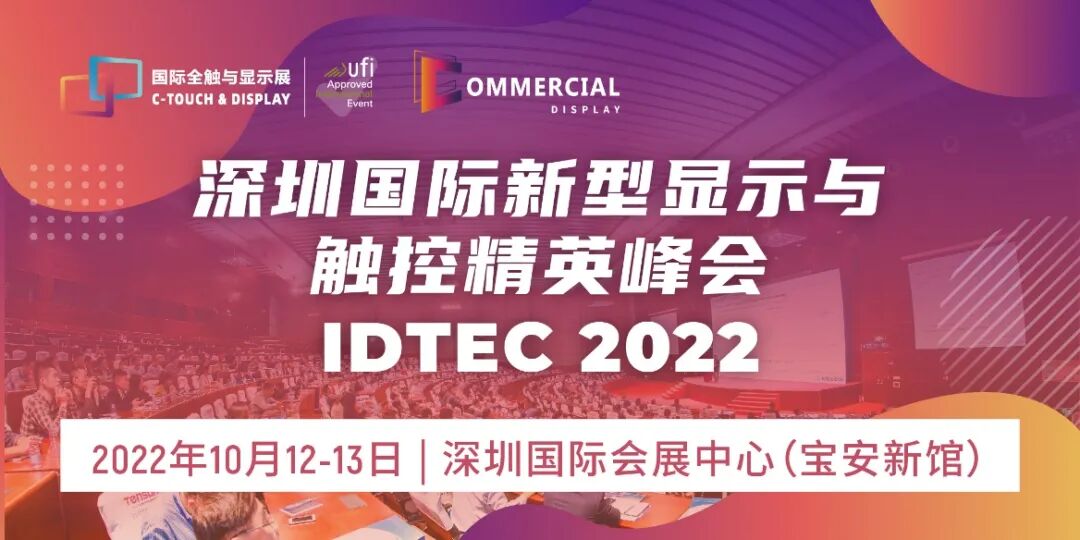 为聚焦前沿技术成果,引领技术和创新应用相结合,励展博览集团联合中国电子视像行业协会公共信息显示分会将于10月12-14日在深圳国际会展中心举办“2022深圳国际新型显示与触控精英分会”(IDTEC 2022)。